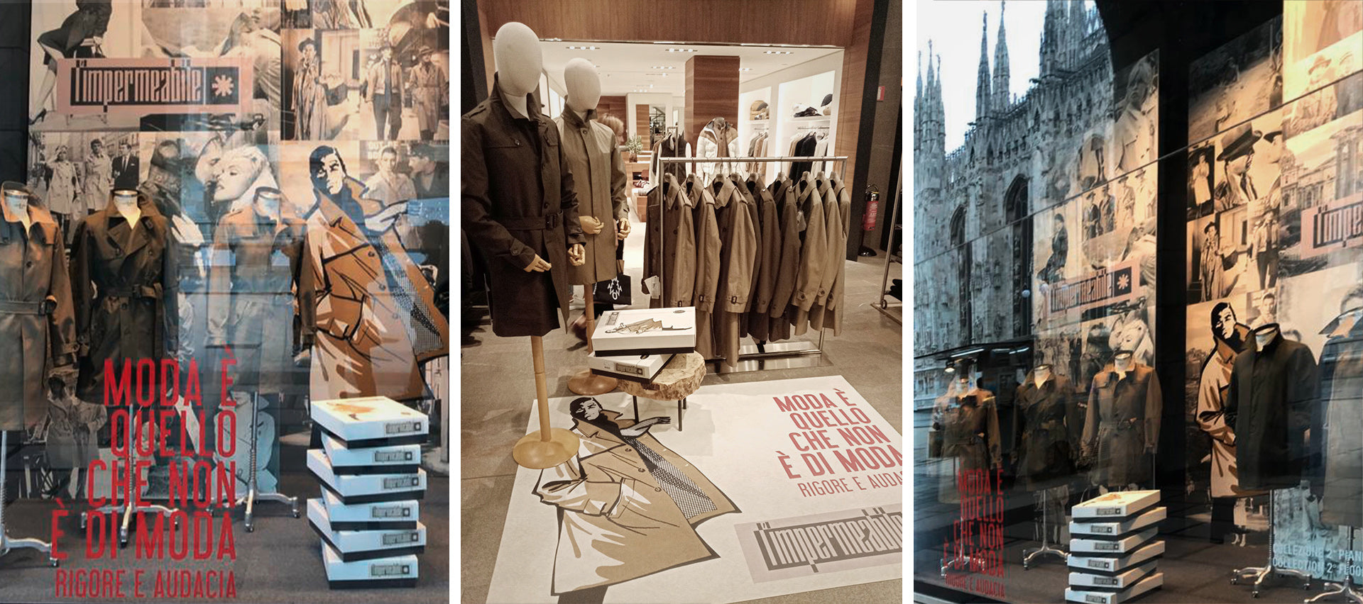 Calmly, but always determined, without giving in to compromises, every season we take up again the jealously guarded sketches of the 60s, in search of the original fabrics of the time to propose our raincoats now as then, with the same dedication.