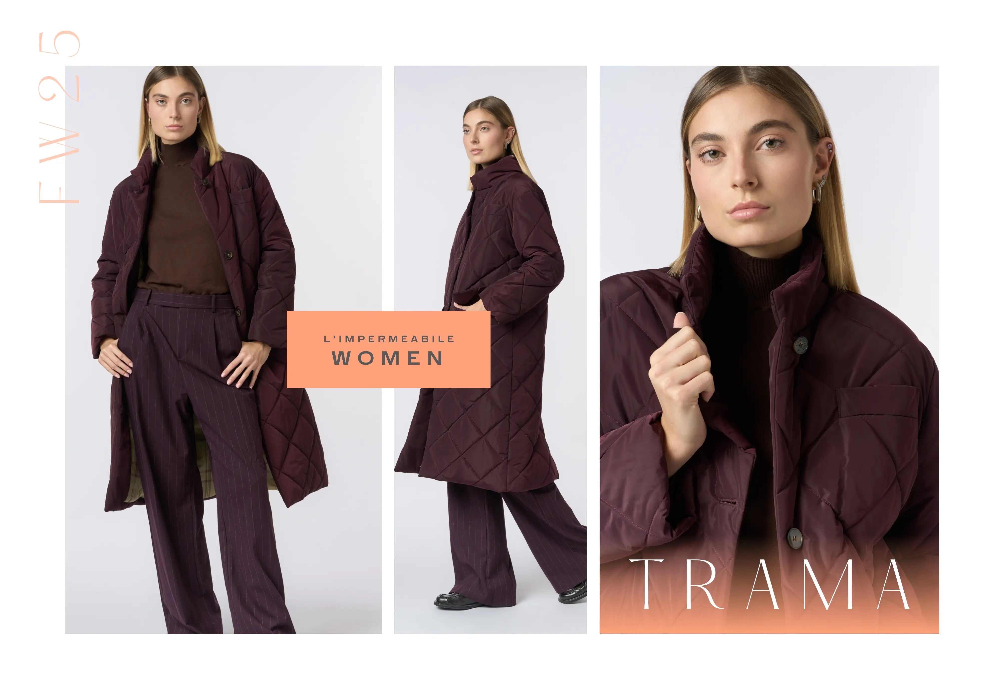 The fabric's texture reveals the garment's soul: a weave of threads, surfaces, and reflections that change over time. In smooth styles, purity of line prevails, while textured fabrics feature herringbone patterns or subtle checks that convey visual depth and authentic tactility. In padded garments, diamond quilting adds a rhythmic design that enhances thermal insulation and gives structure to the shape. Each weave is an invisible script that speaks of technique, manual gesture, and the balance between material and lightness.